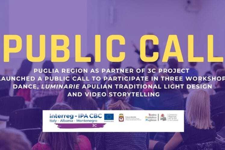 Ministarstvo kulture i medija, kao glavni partner u realizaciji IPA projekta “3C – Prekogranična razmjena sa ciljem razvoja kulture i kreativnih industrija“, obavještava da je projektni partner Regija Pulja, u saradnji saTeatro Pubblico Pugliese, objavio javni poziv za učešće u tri radionice: